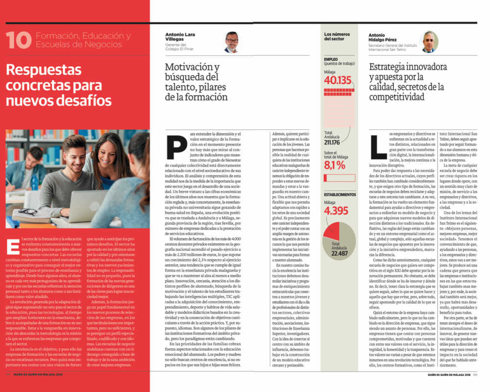 La Educación que nos viene; las claves que han modelado nuestro proyecto educativo durante los últimos 20 años y nuestra visión del sector de la Formación dentro de la Enseñanza Independiente Andaluza se encuentran en el punto de mira de la prestigiosa publicación QUIÉN ES QUIÉN MÁLAGA 2018 editada por DIARIO SUR en colaboración con el Instituto Internacional San Telmo… Nos convertimos en protagonistas de la última edición: