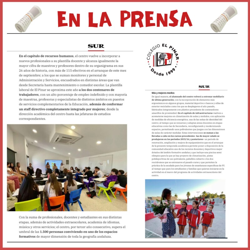 Damos a bienvenida a un nuevo año académico en el que los 21.000 metros cuadrados de espacios docentes, deportivos y de servicios que integran más de medio centenar de aulas, áreas verdes, pistas y pabellón para la práctica de la actividad física, piscina, comedor, laboratorio, zonas lectivas específicas para FP y decenas de equipamientos más -rocódromos, agroaula, sala multisensorial o enfermería, entre otros-; vuelven a cobrar vida con la llegada de los casi 1.350 estudiantes de enseñanzas obligatorias y postobligatorias que ponen en marcha la maquinaria académica del centro con mayor proyección de la enseñanza independiente malagueña.
